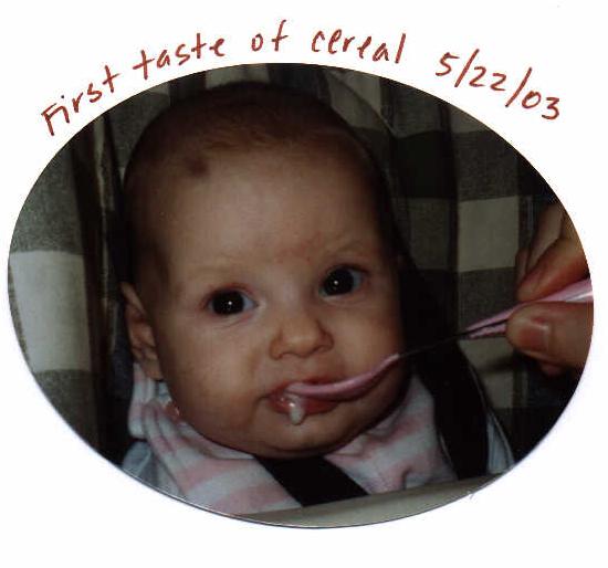 New Photos as of 8/05/2003 Casey's First "Real Meal" Single grain cereal May 22.
